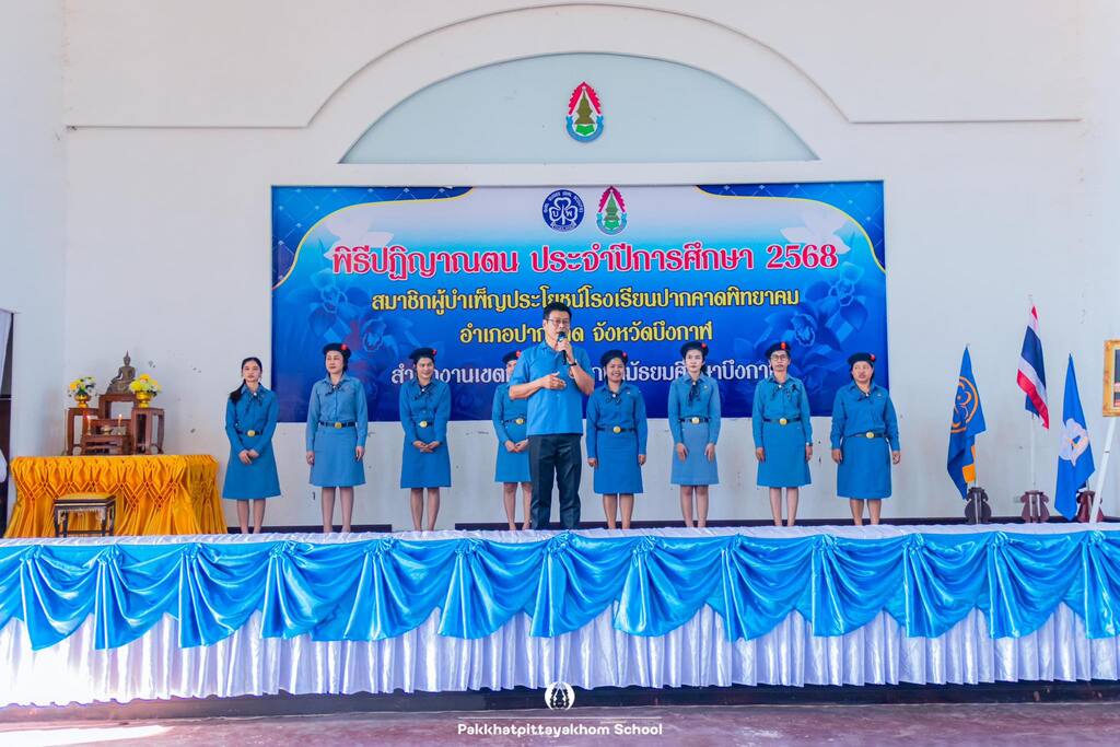 วันที่ 3 ธันวาคม 2568 นายธเนตร มีรัตน์ ผู้อำนวยการโรงเรียนปากคาดพิทยาคมเป็นประธานในพิธีกิจกรรมพิธีปฏิญาณตนของสมาชิกผู้บำเพ็ญประโยชน์ ประจำปีการศึกษา 2568 ณ ห้องประชุมอาทิตวงค์
