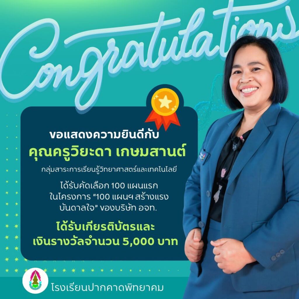 ที่ได้รับคัดเลือก เป็น 1 ใน 100 แผนแรก ในโครงการ “100 แผนฯ สร้างแรงบันดาลใจ” จากบริษัท อักษรเจริญทัศน์
