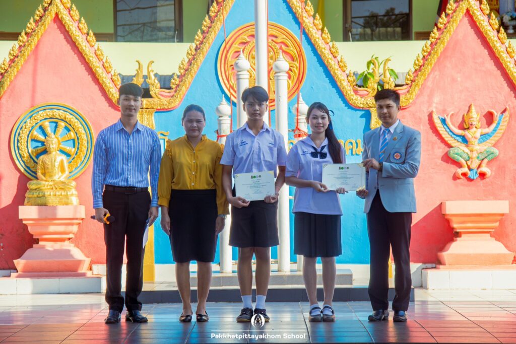 แสดงความยินดีกับครูผู้ฝึกสอนและนักเรียนที่ได้รับรางวัลในการแข่งขันการประกวดเยาวชนต้นแบบด้านมารยาทไทยและมารยาทในสังคม จัดโดยวัฒนธรรมจังหวัดบึงกาฬ
